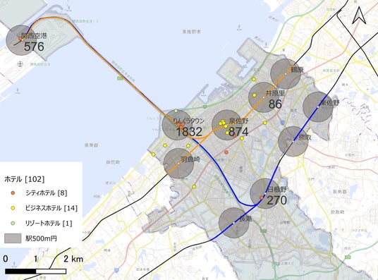 関西空港への乗り換え拠点である「泉佐野駅」周辺に注目。営業している飲食店の時間帯による変化などを実地で調査しました。