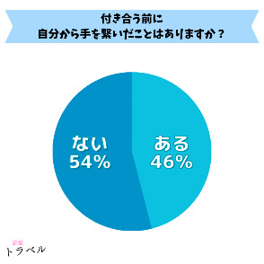 実際に付き合う前に自分から手を繋いだことが『ある』と回答した男性は46%/『ない』と回答した男性は54%という結果でした。