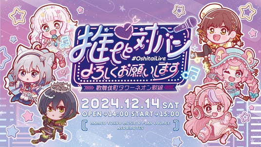 バーチャルタレント専用配信プラットフォーム「V-TIPS」は、VTuber事務所「ななはぴ」が主催するイベント「推しと対バンよろしくお願いします~歌舞伎町タワー ネオン戦線~」のオンライン配信を、2024年12月14日(土)14時から行います。本イベントは、人気VSingerたちが新宿のランドマーク・歌舞伎町タワーに集結し、会場のnamco TOKYO(ナムコトーキョー)からお送りする音楽ライブです。