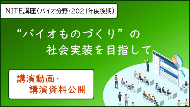 独立行政法人製品評価技術基盤機構(NITE)では公開講座として「NITE講座」を開催しています。そのなかでも、バイオテクノロジー分野の2021年度後期プログラム「“バイオものづくり”の社会実装を目指して」の講演動画と共に、講演資料を公開しましたのでお知らせいたします。