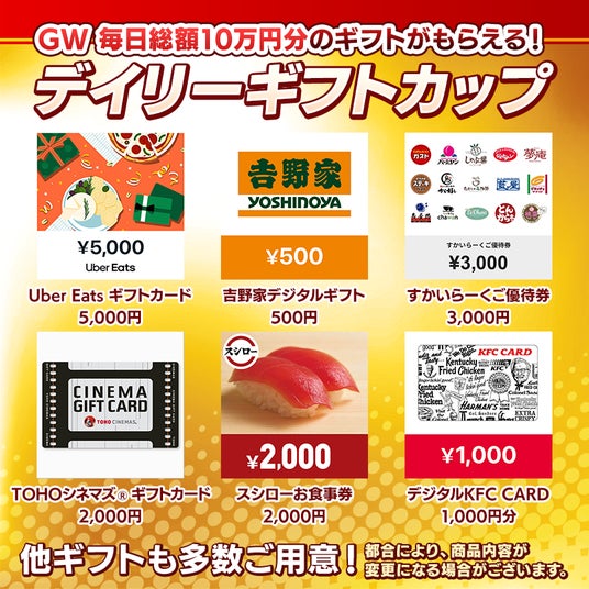 ■「GWデイリーギフトカップ」GW期間中毎日開催!