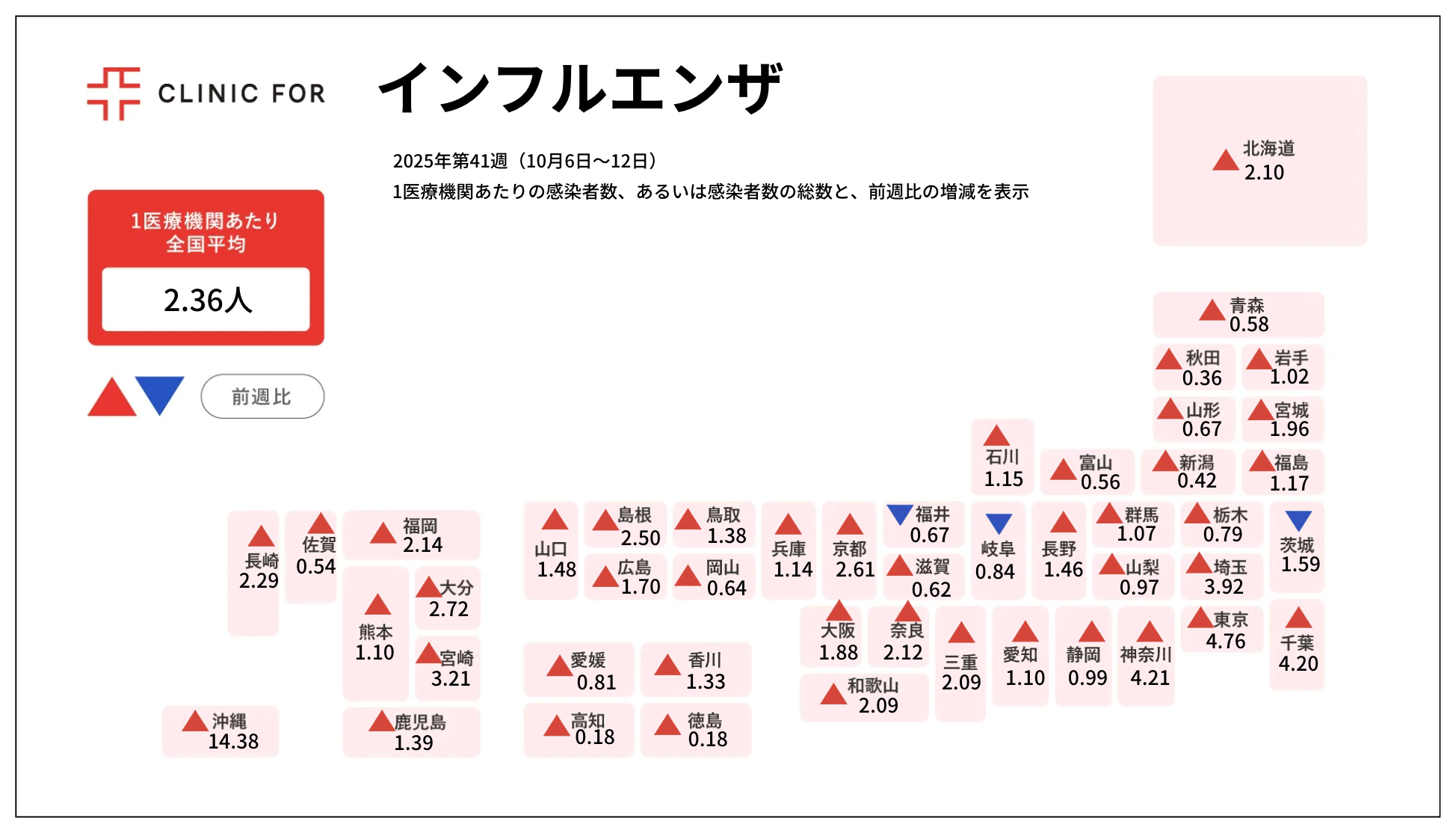 全国13院以上*1の対面診療とオンライン診療を展開する「クリニックフォアグループ」(以下クリニックフォア)は、全国的に流行期に入ったインフルエンザについて、2025年の傾向と予防・受診のポイントを発表しました。
