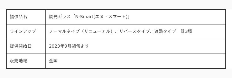 ナカバヤシ株式会社(本社:大阪市中央区、社長:湯本 秀昭)は、自社ブランドの調光ガラス「N-Smart(エヌ・スマート)」をリニューアルし、紫外線カット技術により直射日光が当たる場所での設置を実現!また、新たに「リバースタイプ」・「遮熱タイプ」をラインアップし、2023年9月初旬より提供を開始します。