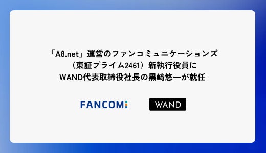 フルファネル型ソーシャルメディアマーケティングサービスを提供する株式会社WAND(本社:東京都渋谷区、代表取締役社長:黒崎悠一、以下「WAND」)は、2025年4月1日付で、WAND代表取締役社長の黒崎悠一が同社親会社の株式会社ファンコミュニケーションズ(本社:東京都渋谷区、代表取締役社長:二宮幸司 東京証券取引所プライム市場:2461、以下「ファンコミュニケーションズ」)執行役員に就任したことをお知らせします。