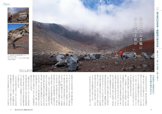 本書は18の下山ルートを、南麓エリア(富士宮口)・東麓エリア(御殿場口・須走口)・北麓エリア(吉田口・青木ヶ原樹海)の3章仕立てで紹介。富士宮口ではダイナミックな宝永火口の景観、御殿場口では美しい広葉樹の森、吉田口では富士講で栄えた信仰の遺跡など、個性あふれるルートをマップ付きで紹介します。