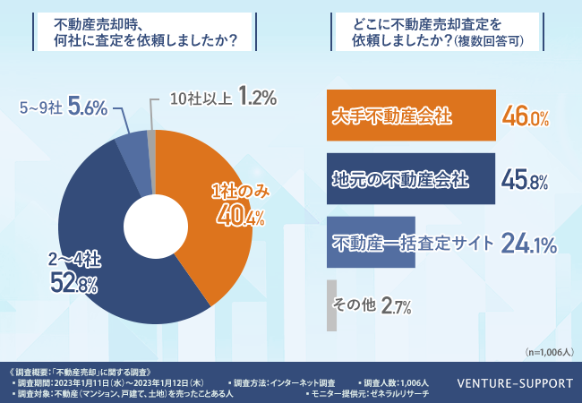 52.8%は2~4社に不動産売却の査定依頼をしている。1社のみの査定は40.4%