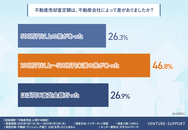 複数社に不動産売却査定を依頼した際に、不動産会社によって査定額に差があったかどうか、さらに詳しく調査。