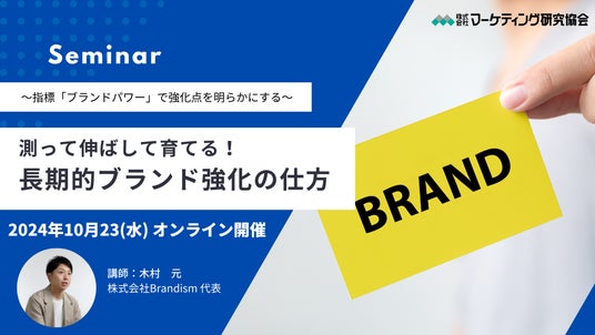 株式会社マーケティング研究協会は2024年10月23日オンラインセミナー「測って伸ばして育てる!長期的ブランド強化の仕方」を開催します。本セミナーはアーカイブ動画での受講も可能です(期間限定)。
