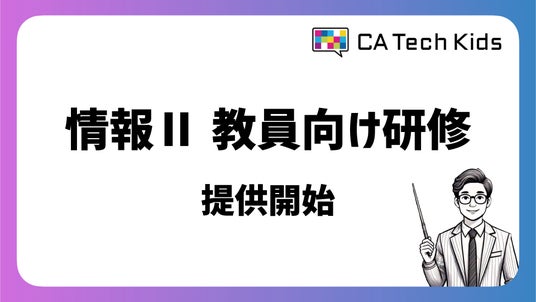プログラミング教育事業の株式会社CA Tech Kids(読み:シーエーテックキッズ、本社:東京都渋谷区、代表取締役社長:上野朝大)は、高等学校情報科「情報II」の教員向け研修の提供を開始いたします。