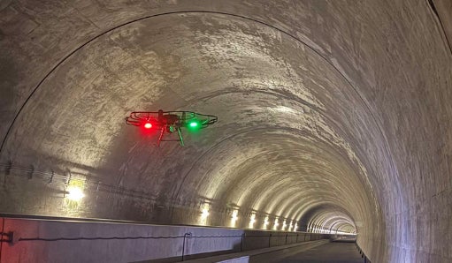 - 一般的にドローンは、全地球航法衛星システム(GNSS)を活用して機体の位置を認識しながら飛行させることができますが、トンネル内ではGNSSが使用できないため、センサ等を活用して自らの上下・左右位置と向きを認識し、周囲の構造物と一定の距離をとりながら飛行させる必要があります。