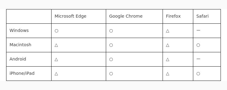 〇:推奨 △:非推奨(利用は可能) ー:利用不可