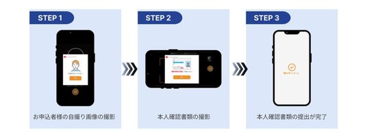 自撮り画像(動画)と本人確認書類の撮影により、自撮りと書類が一致しているかを判断し、本人確認を行う仕組みです。
