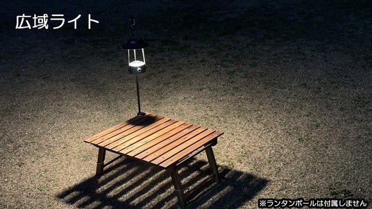 下方向へ光が拡散するメインライトはランタンのようにぶら下げることを想定し、高い位置に設置すれば後半に照明を照らします。