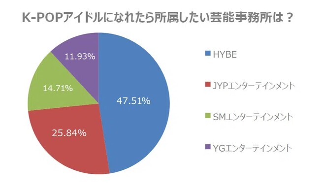 世界各国から“K-POPアイドル”が目指せる中、Danmeeでは「もしもあなたがK-POPアイドルになれたら、所属したいのはどの芸能事務所?」をテーマにアンケートを実施しました。