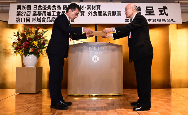 「業務用加工食品ヒット賞」は、株式会社日本食糧新聞社が主催し、全国の有力業務用食品卸によるモニター選考により選出され、業務用卸各団体代表者で構成される選考委員会の審議を経て決定したものです。外食産業の活性化などに貢献した業務用加工食品や素材の栄誉を称える賞となります。