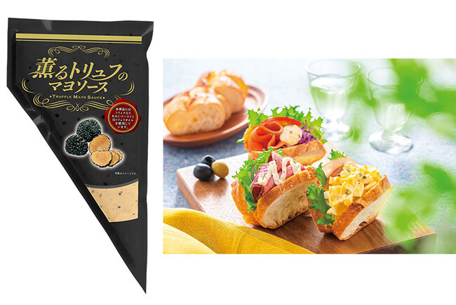 コロナ禍以前に海外視察をした際、海外では想像以上に様々な食品にトリュフのフレーバーが展開されていることに着目して、「薫るトリュフのマヨソース」の開発に取り組みました。商品化にあたっては、市場調査から始まり、どのような食品との相性が良いか試作・検討を行い、「使いやすさ」と「汎用性」の提供価値から「マヨソース」を選定。そこからの味づくりはもちろん、原料、包装形態、ネーミング・デザイン等、こだわりぬいて作られた商品です。