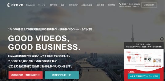 Crevo株式会社は2,000社・10,000件を超える動画制作実績をもとに、低価格・高品質な映像でお客様のビジネス課題を解決へ導く動画制作会社です。