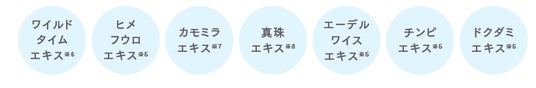ワイルドタイムエキス*⁶やヒメフウロエキス*⁵、カモミラエキス*⁷、真珠エキス*⁸などの美容成分を贅沢に配合。うるおいにより透明感目覚める美しさへ。