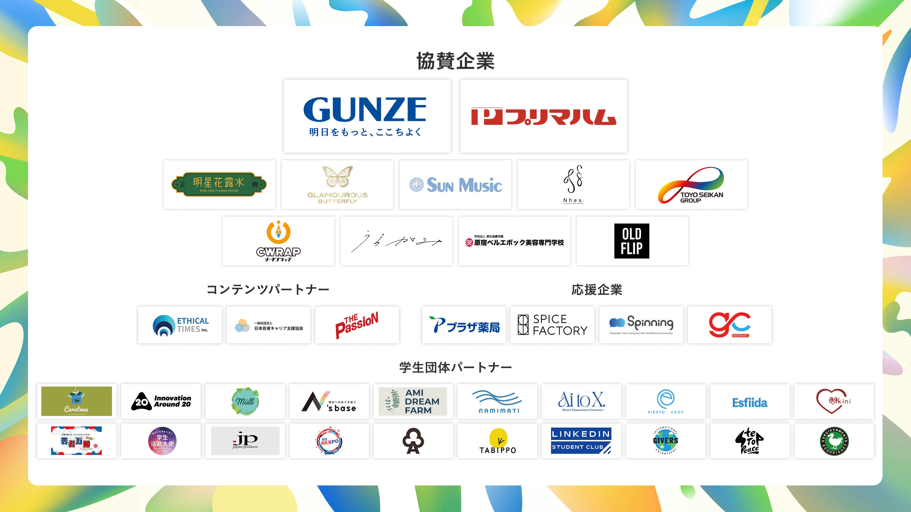 多くの出演者様、学生団体様、出展企業様に共創いただきました。ご来場いただいた皆様、共創いただいた皆様ありがとうございました。