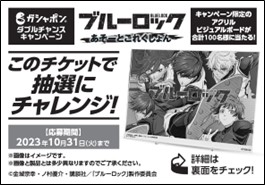商品を買うと抽選で100名様に「アクリルビジュアルボード」が当たるダブルチャンスキャンペーン開催中!『ブルーロック あそーとこれくしょん』~ 応募締切:2023年10月31日(火)まで ~