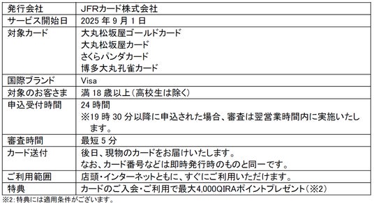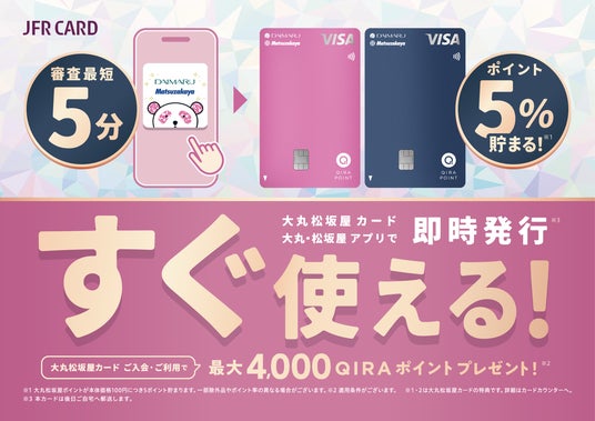 JFRカード株式会社(本社:大阪府高槻市、代表取締役社長:橋本 尚弥、以下、JFRカード)は、2025年9月1日より、JFRカードが発行する「大丸松坂屋カード」において、最短審査5分で即時発行・即時利用が可能となる新サービスを開始いたします。また、カードデザインを刷新し、よりスタイリッシュかつセキュアな券面へとリニューアルいたします。