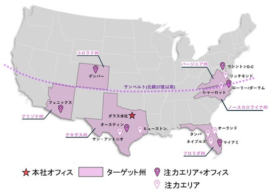また、TRG社の経営陣は開発地域の市場に精通しており、案件の目利き力やリスク管理能力に優れ、全米有数の機関投資家との豊富なJV実績を有し、サンベルト地域を中心に確かな実績とネットワークを構築しています。