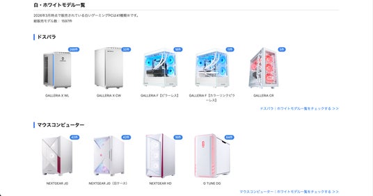今回の追加により、ユーザーはドスパラ、マウスコンピューター、OZgaming、STORM、フロンティアをはじめとした複数メーカーの白いゲーミングPCを、1ページ上でまとめて確認・比較しやすくなりました。見た目の統一感やインテリア性を重視して製品を選びたいユーザーにとって、メーカー横断で選択肢を把握できる検索体験がさらに強化されています。