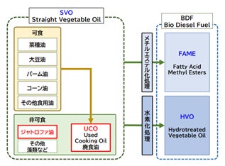 これまでのバイオ燃料実証は、FAME(脂肪酸メチルエステル)やHVO(水素化植物油)など加工燃料が中心でしたが、本取り組みでは、より簡素な製造工程で得られるSVOを直接活用する点に大きな意義があります。