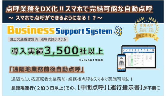 BusinessSupportSystemにてスマホでできる自動点呼(遠隔地業務前後自動点呼)機能をリリース
