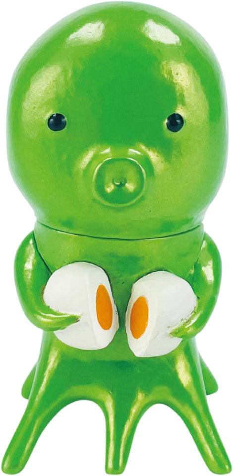 ゆで卵を二つに割る蛸(グリーン)