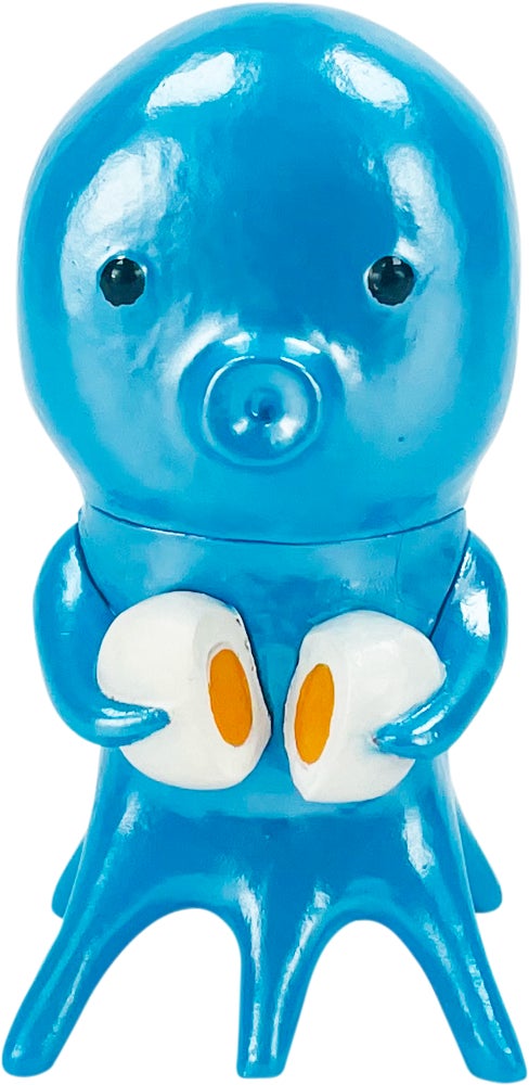 ゆで卵を二つに割る蛸(ブルー)