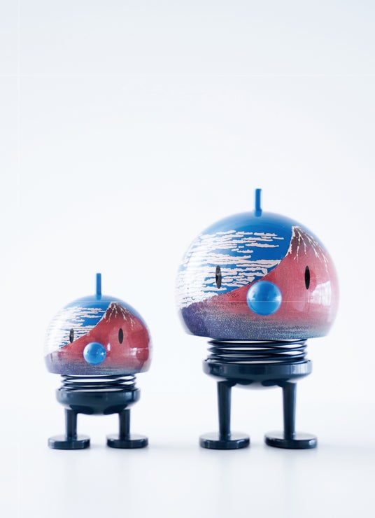大胆な線と色彩で描かれてきた浮世絵は、Hoptimistの丸みを帯びたフォルムに映し出されることで、一枚の「絵」から、立体として楽しむ「オブジェ」へと姿を変えます。