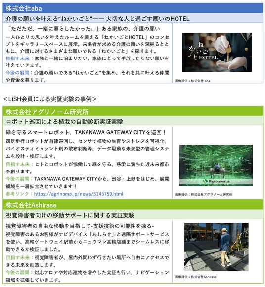 - LiSH公式HP実証実験ページ:https://www.takanawagateway-lish.com/projects/