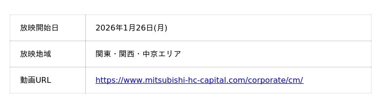 三菱HCキャピタル株式会社(代表取締役 社長執行役員:久井 大樹/以下、当社)は、俳優の山崎賢人さんが出演する新CMを本日1月26日(月)より放映します。