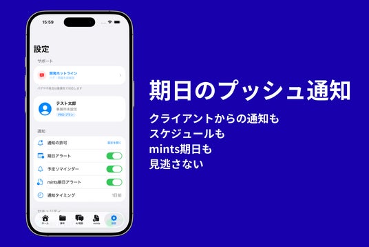 弁護士の「外出先の武器」として。クライアントポータル・mints期日・スケジュールをプッシュ通知。見逃さない。