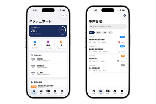 弁護士の約半分の業務時間は外出先にあります。裁判所での待機、依頼者のもとへの訪問、拘置所での接見--そのすべての場面において、スマートフォンから案件情報にアクセスし、AI機能を呼び出し、期日や送達のアラートをリアルタイムで受け取る環境が、今まさに必要とされています。