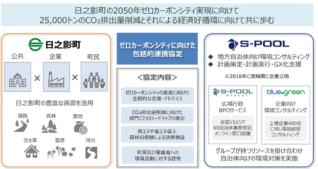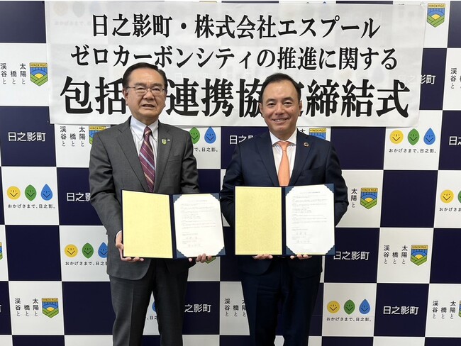 株式会社エスプール(本社:東京都千代田区/代表取締役会長兼社長 浦上 壮平/以下、「当社」)は、本日、宮崎県日之影(町長:佐藤 貢)と包括的連携協定を締結し、同町の地域資源や機能を活用したゼロカーボンシティへの取り組みを開始することとなりました。