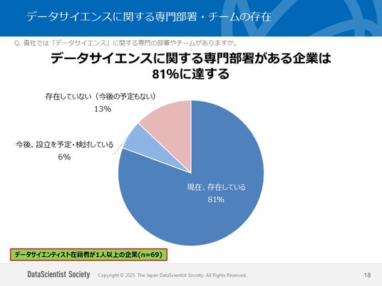 企業におけるデータ利活用も進み、DSの需要もより一層高まっています。そうした中で、DSの在籍状況・採用実態、欲しい人材像などについて調査をしました。これら調査結果を基に、DSと企業のミスマッチを解消し、DSの経験・能力を正しく活かすことを目的にしています。