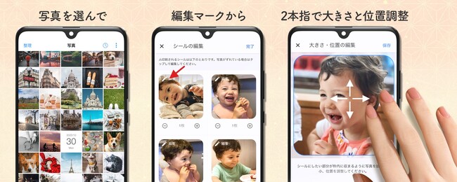 ・アプリ内でお好きな写真を選ぶと、自動でシールの枠内に配置されます。