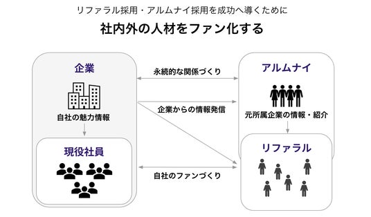 リファラル採用と同時に、アルムナイの活性化から出戻り採用に至るまでを包括的に支援