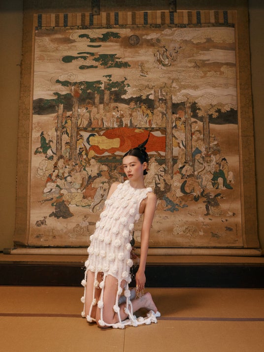 SISIOの2025年秋冬コレクション「ANITYA <諸行無常>」は、デザイナー シャーロット・シャオの旅路と自然への深い敬愛から生まれました。アイスランドとグリーンランドでの孤独な体験、ロサンゼルスでの気候危機の現実など、自然的現象が織りなす無常の美を、「成・住・壊・空」の世界の生成消滅を説明する四つの時期の循環が説かれた仏教哲学と、現代科学の視点を交え、共鳴させます。
