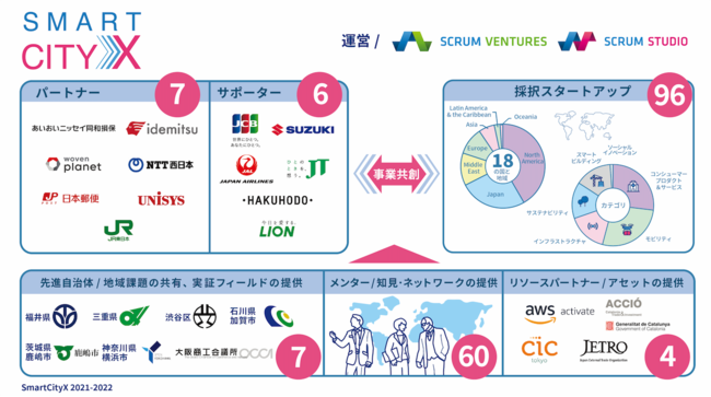 スクラムスタジオ株式会社が主催する『SmartCityX』は、デジタル化やコロナ禍の社会変容を前向きな未来への変革の機会と捉え、各業界を代表する大企業と世界中のスタートアップが協働し、産業や技術の視点だけではなく、生活者目線で価値の高いサービス及びアプリケーションを共創するグローバル・オープンイノベーション・プログラムです。