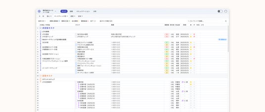 スーツアップは、チームでかんたん、毎日続けられるプロジェクト・タスク管理ツールです。表計算ソフトのような操作で、チームの業務を「見える化」して、タスクの抜け漏れや期限遅れを防ぎます。チームのタスク管理を実現することで、業務の効率化やオペレーションの改善が進み、大幅なコスト削減を実現します。