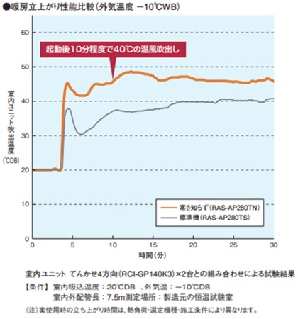 「寒さ知らず」シリーズは高い暖房立ち上がり性能で、寒い冬の朝も快適な室内環境を提供します。