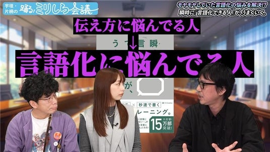 - 第一回は4月16日より配信。ゲストはコピーライターの荒木俊哉さん。著書の『瞬時に「言語化できる人」が、うまくいく。』(SBクリエイティブ 刊)を元に、MCの二人が「言語化」のトレーニングに取り組みます。
