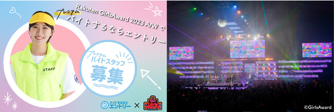 “人と仕事の縁むすびに挑戦し続ける”を企業理念に、主にお仕事紹介サイト「スマジョブ」やお仕事マッチングサービス「シェアジョブ」を運営する株式会社エントリー(本社:東京都新宿区、代表取締役:寺本潤、以下エントリー)は、2023年9月30日(土)に開催される「Rakuten GirlsAward 2023 A/W」おいて、株式会社Award(本社:東京都港区、代表取締役社長:長谷勇希)とのコラボバイト「プレミアムバイトスタッフ」の募集を2023年9月8日から開始することをお知らせします。