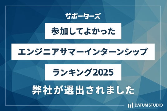 DATUM STUDIO株式会社(本社:東京都港区、代表取締役社長:武智 壮平、以下、DATUM STUDIO)は、株式会社サポーターズ(東京都港区、代表取締役:楓 博光、以下、サポーターズ)が2026年卒業予定の学生を対象に調査を実施・発表した「参加してよかったエンジニアサマーインターンシップランキング2025」で8位に選出されたことをお知らせします。