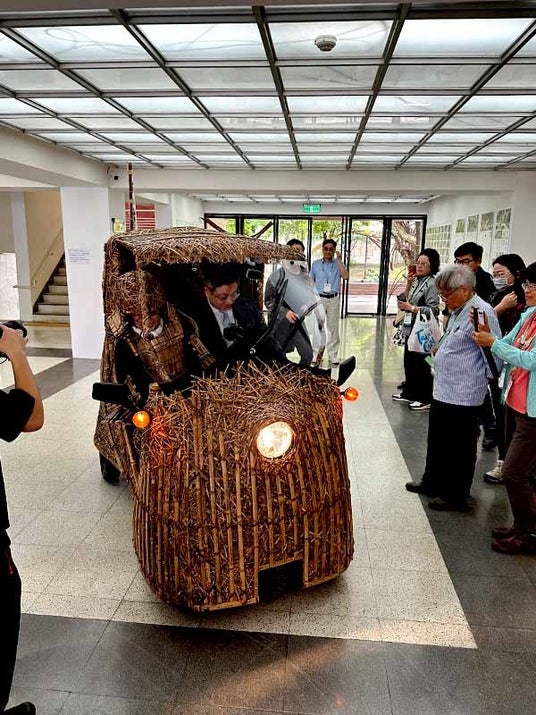 竹虎四代目は高知県特産の虎斑竹(とらふだけ)で製作された電気自動車「竹トラッカー」に乗り、国立陽明交通大学に特別に設置された2kmのコースを走行しました。走行初日は当初悪天候で心配していましたが、走行前に一気に天気が回復し、絶好のコンディションで走行する事が出来ました。沢山の方に竹トラッカーをご覧いただき、竹についてお話をさせていただく貴重な機会を得て、とても嬉しく思っております。