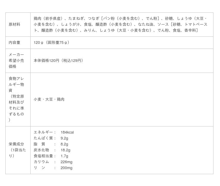 昭和49年より愛され続けるおなじみの「イシイのミートボール」。定番の甘酸っぱいトマトソースはお子様にも人気。お肉は国産若鶏を使用し、乳・卵は使用していない。