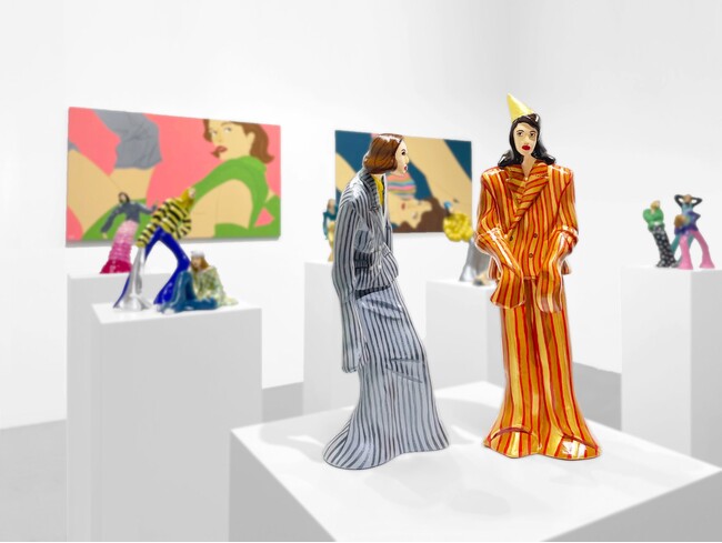ファッション性の高いポップなイメージと、力強い構図や配色でイラストレーターとして多岐にわたる媒体で活躍中のAZUSA IIDAが、本展で初となる石膏を用いた立体作品を発表します。これまでイラストレーターとして主に平面的な作品を制作してきましたが、会場となるギャラリーを見た瞬間に石膏による立体表現が頭に浮かんだといいます。自身の経験や技術にとらわれることなく、制作意欲や感情に正直に作品と向き合うクリエイターとしての姿勢が、今回の新作展で存分に表現されています。
